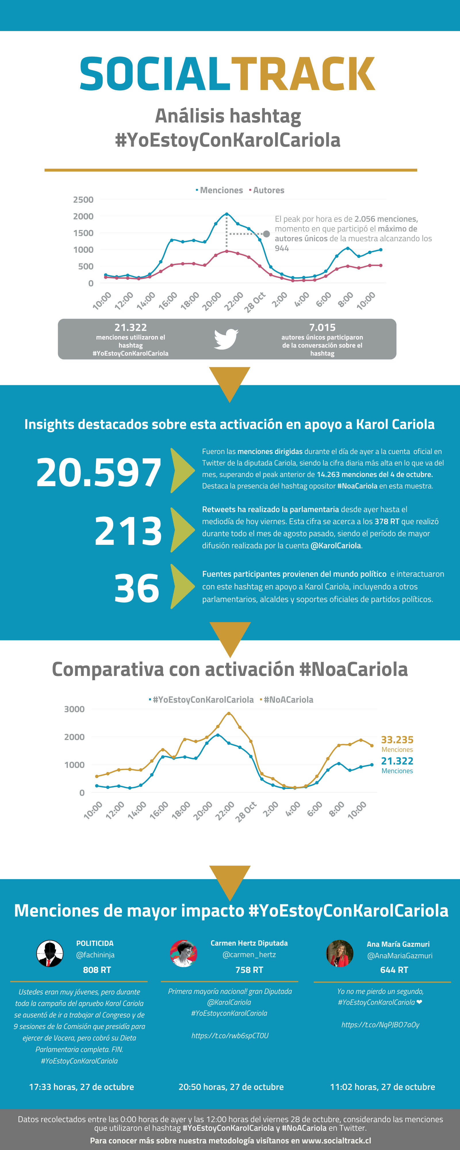 En la siguiente infografía revisamos algunos insights sobre #YoApoyoaKarolCariola y una comparativa versus #NoaCariola.